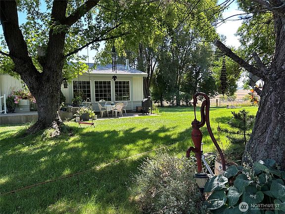 Valley Quality Triple Wide on 10 irrigated acres. 3 beds, den, 2.5 baths. New roof. There is a full concrete foundation under the home. View property to the east & west. Two separate pastures in orchard grass with underground in upper pasture and wheel line on lower pasture. Three car garage w/shop. Three stall horse barn with storage/tack room has power, water and corral. Many mature trees makes this a park like setting. Green house and large garden area with many flowers planted for pollinators. Just 10 minutes from town. Block 40, East Columbia Irrigation, approx. $1100/year for water & power. There is a water assoc. for irrigation water. No HOA. Private well and septic. Ring cameras excluded. Seller is a WA State licensed broker.