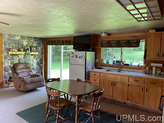 This is it! Four bedrooms, one bath and 31 acres of awesome adventures. Thirty one acres not enough? This property is surrounded on three sides by thousands of acres of public forestlands! You can wonder for days! The open concept living/kitchen area is spacious enough for gatherings and features large windows and a sliding door so you never miss the wildlife meandering through the yard. After a day in the forest, around the gas fireplace is the perfect place to warm your toes and share your stories. Tongue and groove cedar can be found in almost every room in the house giving your that "Up North" feel. Four bedrooms and an oversized full bath complete this one level home. The acreage will provide you with plenty of firewood should you choose to use the back up wood burning furnace for heat. The 28x40 garage has plenty of room for your tools and toys! Close to snowmobile and ATV trails. Whether you are a hunter, a fisherman, a nature lover or just someone that enjoys the quiet, this property will not disappoint you. Call for your showing today!