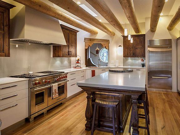 A Beautifully remodeled home blending a contemporary essence with classic Southwestern style. This gracious home offers stunning mountain views while maintaining great privacy. The master suite includes a generous walk-in closet and a beautifully detailed master bath. A custom kitchen, as seen in Su Casa Magazine, will satisfy the most discerning chef. Exceptional outdoor spaces that include a custom deck with 360 mountain views will not disappoint. This house has a newer TPO roof, new stucco, and is an outstanding buy! Move right in and enjoy a warm winter night next to one of the four fireplaces!