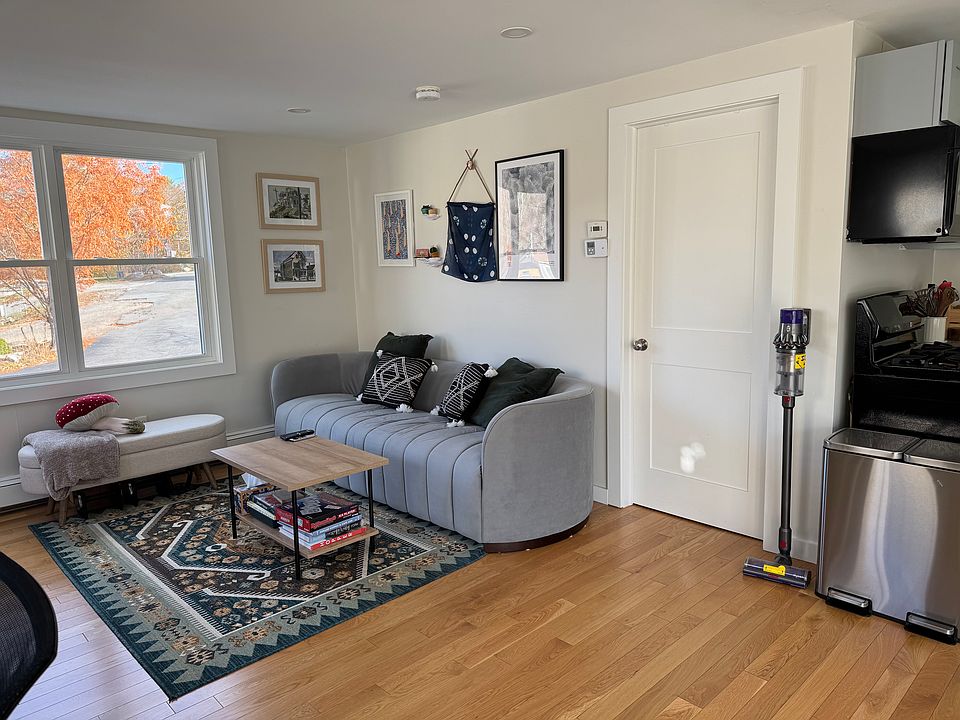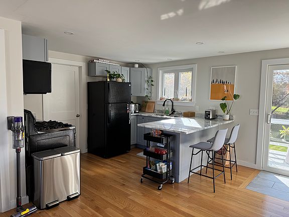 Available 2/1/25. Small unfurnished one bedroom apartment, year-round rental in Riverdale. Lease through May 2026 preferred. Recently remodeled; in excellent condition. Two private entrances; attached in-law style to owner-occupied house; no direct access between units. Hardwood floors, quartzite countertops, gas stove. In-unit washer/dryer. Tiled shower and tub. Only one small closet. Small private deck looks out on to shared yard with quiet sunsets in friendly neighborhood. Located on dead end offshoot road off Cherry Street with little traffic. 5 minute walk to Dogtown Common. Driveway parking. Pets: Cat yes; dog no. **Tenant must be dog-friendly as owners have two large dogs who use the yard.** No smoking. Quiet, shared property. Utilities: Forced air heat. Electric. Central A/C. WiFi. All utilities included in rent, including WiFi Must have proof of income, good credit and references. WHEN YOU CONTACT: please provide information on: - all tenants - pets - employment - anything else you might want to share Owner will contact you re: showing. NO PHONE CALLS PLEASE One month security deposit. Owner pays all utilities including water, gas, electric, WiFi. Lease through 05/2026 to align with regular rental season preferred. Cat allowed. Owner has two large dogs who use shared yard freely. Non-smoking apartment. Tenant responsible for snow shoveling their own steps / deck / parking. Yard personally & professionally maintained by owner.