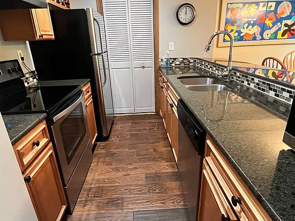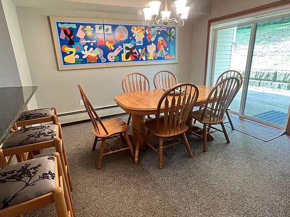 Beautifully updated first floor, walk-out to the ski trail at Seasons on Mount Snow! Granite counters in kitchen with newer cabinets and appliances. Beautiful tiled floors and new carpet. Two bedrooms, primary with bath and walk-in closet. Both bathrooms have updated vanities and newer tiled floors. There's even a new furnace. Enjoy backyard fun from your deck or directly on the lawn. Walk to the ski trail across from the building and ski in for lunches. Enjoy all of the newer amenities offered at the recreation center, both indoor and out door pools and hot tubs, barbecue area, new work-out equipment and much more. Walk to Mt Snow off season for all of the fun that's offered. No need to use your car! Don't miss this beauty!
