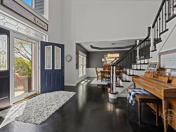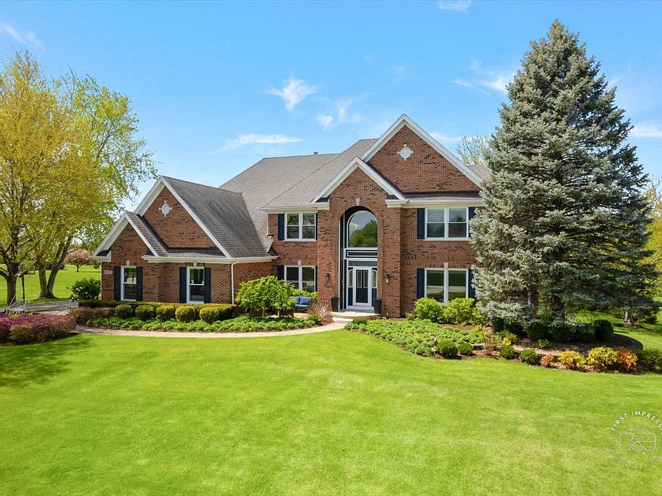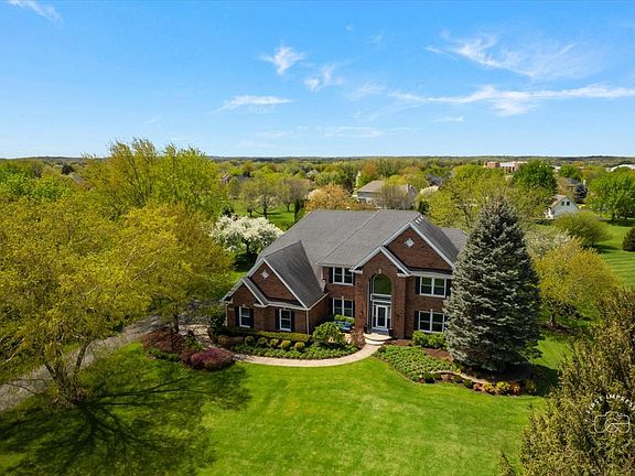 Welcome to this stunning updated 5-bedroom, 4 full and 1 half bath custom home nestled on a beautifully landscaped 1.25-acre lot in the desirable Red Gate Ridge neighborhood of St. Charles. With its brick and freshly painted cedar exterior and mature trees-including fruit trees-this home offers timeless curb appeal and serene outdoor living with a deck, patio, and fire pit area. Inside, a grand two-story foyer with a sweeping staircase sets the tone for this elegant home. The formal dining room features updated millwork , custom ceiling and lighting. The private office impresses with French doors and a custom built-in bookcase. The heart of the home is the beautiful kitchen, complete with high-end appliances, center island, ample counter space, and an eat-in area. It opens seamlessly into the family room with a stone fireplace, stunning coffered ceiling and flows into an extended sun room with a vaulted ceiling-perfect for entertaining or relaxing with the peacefull views of the yard. A main level flex room with a murphy bed and full bath offer versatile space for guests, hobbies, or a second office. The upper level you'll find five generously sized bedrooms and 3 full baths. The luxurious primary suite with dual walk-in closets and a spa-like en-suite bath. The finished English basement provides exceptional additional living space, including a recreation area, a second fireplace, a bar area, game zone with a built-in Murphy bed, half bath and garden windows that bring in natural light. Additional highlights include a three-car garage, main-level laundry, and abundant storage throughout. Located in top-rated St. Charles School District and close to shopping, dining, and parks, this home offers the perfect blend of luxury, space, and convenience