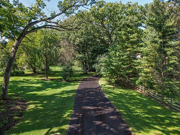 Hidden gem amongst mature oaks, this English manor home overlooks Ferson creek that runs through the property, with a bridge for easy access to even more property. Step into a two-story foyer and be enchanted by the winding staircase and the craftsmanship throughout, with coffered ceiling and gourmet kitchen - - this home features over 8500 sq feet with two bonus spaces that are 1/4 of the home's footage. Located on 3+ acres, this home is both comfortable and spacious enough for great entertaining. Just some high points - heated pool with electric cover, gas torch and waterfall urns, hot tub, cabana with wood-burning pizza oven and a deck that is expansive. Private bridge, wide enough for landscape equipment to use when crossing to the volleyball court and even more property! The home has 5 garage spaces - 4 for cars and one for a golf cart/lawn equipment, whatever you choose. The outdoor building, with electricity, has lots of possibilities. Fully finished basement with bar, fireplace and extra large gathering space, with a lovely 2500-bottle wine cellar with speakeasy door. Pop some corn and enjoy a movie in the theater room while relaxing in motorized leather chairs. Walk out directly from basement entertaining to the pool area where there are so many private spots to sit and relax! Custom fire pit with seating for 10-12, waterfall with koi pond. The bedrooms and bathrooms are large, and there's a guest suite upstairs with range, refrigerator. 6 bedrooms, each with large walk-in closets, 5 full baths plus powder rooms. Crestron system for lighting, music and tv throughout. Radiant floors and AC in garage. Beautiful tiger wood and oak flooring. Two new AC unit and thermostats (2021), new roof (2021), newly painted throughout (2021), new dishwasher (2021), and one new hot water heater (2023). Newly epoxied garage floors. Too much to fit on the page!