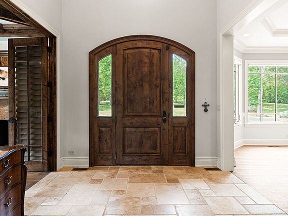 7,720 approximate square feet of beautiful living space. Enter this exclusive private wooded riverfront estate through an elegant two-story foyer. The exquisite dining room has tray ceilings, crown molding, and chair rail molding. The dry bar is a great addition as it provides excess space. The kitchen has been designed with every detail imaginable! Discover granite countertops throughout, a large island, high end stainless-steel appliances, custom cabinetry, and a walk-in food pantry. The eating area offers large, beautiful windows to view the river as well as access to the private deck with a stone fireplace! The kitchen gracefully opens to the impeccable family room with 2-story beamed ceilings, an array of windows, and a multi-sided stone fireplace that is shared with the den. On the first floor one will find a sophisticated den with vaulted ceilings, a stone fireplace, more windows to draw in that natural light, a lovely space to relax. The grand home office with beamed ceilings, detailed custom bookshelves, and a stone fireplace commands attention, radiating warmth and creating a cozy ambiance. Additionally, the office features French door to a secluded courtyard with a Pergola. The second floor allows you to discover an elevated Primary suite like no other with stunning views of the river, and a detailed sitting area. The spa-like Primary bath features stunning tile design, custom cabinetry, and a luxurious custom shower & separate whirlpool tub. The elevated Primary closet boasts custom shelving. Additionally, the beautiful bedrooms and highly detailed private baths are found on the second floor. Discover a first-floor laundry room located within the marvelous mudroom boasting elevated custom lockers and cubbies. This home has a large heated four car garage! Convenient first floor full bath is close to the garage for that busy lifestyle! The walkout lower level boasts a fabulous entertaining space with a custom bar, large family room with a brick fireplace, an exercise room, and billiard room. In addition, the walkout lower level offers a private 5th bedroom and full bath. From nearly every window, experience extraordinary views of the private wooded lot and the Fox River. The walkout leads to a brick paver patio and a stone walkway leading to the river. Enjoy an amazing entertaining yard that leads to the Fox River where your days can be filled with water sports including jet skis, boating, fishing or just enjoying the true beauty of nature and the river. This private estate is proudly located just minutes from downtown St. Charles which offers fabulous restaurants, shopping and the highly rated School District 303. St. Charles is home to many private schools as well as country clubs.