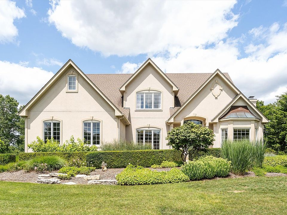 Welcome to 6N718 Colonel Bennett Ln, a stunning 5BR/3.5BA luxury home nestled in the prestigious Corron Glen neighborhood of St. Charles, Illinois. Situated on a beautifully landscaped 1.29-acre lot, this exquisite property offers a three-car attached garage, elegant paver walkways, a welcoming front patio, and a backyard deck that leads to a brick paver patio and firepit, perfect for outdoor entertaining. The storage shed with electric provides additional convenience. Inside, you'll find soaring vaulted ceilings, skylights that fill the space with natural light, and rich hardwood flooring throughout. The smart thermostat adds modern convenience. The formal dining room and butler pantry are ideal for hosting gatherings, while the eat-in kitchen boasts granite countertops, stainless steel appliances, an island, and a cozy breakfast nook. The vaulted family room features a skylight and a floor-to-ceiling stone fireplace, creating a warm and inviting atmosphere. The library, complete with built-in maple bookcases and a desk, offers a serene retreat. The first-floor home office, outfitted with cherry built-ins, provides a perfect workspace. Generous bedroom sizes include the luxurious master suite, meticulously remodeled spa-like bath with a double-bowl vanity, a whirlpool tub, and a separate shower. The finished walkout basement includes a rec room with a gas log fireplace flanked by built-ins and an entertainment center niche, bar area, a fifth bedroom, and a full bathroom, adding to the home's versatility. Recent updates include a new roof in 2014, new carpet in 2022, a new driveway in 2020, and a new furnace and AC in 2016. The cedar siding was also re-stained in 2022. This impeccable home is close to forest preserves, offering tranquility and natural beauty. Don't miss the chance to own this exceptional property at 6N718 Colonel Bennett Ln!
