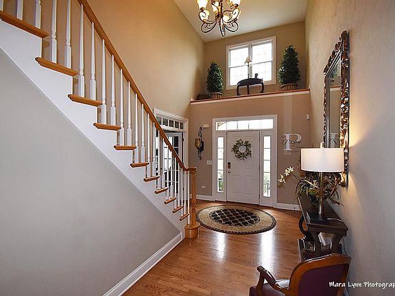 Peace & privacy on this stunning postcard acre lot backing to treeline! 3400 square feet of dramatic floor plan! Hardwood floors graciously cover the entire main level & under the carpeting in the master quarters! Stunning 2 story family room boasts floor to ceiling masonry fireplace & catwalk above! Turret maple & granite island kitchen offers newer stainless steel appliances! Extra wide upper hall is appointed with arched openings to family room below! Versatile finished English basement has full bath, 5th bedroom, exercise & rec areas! New roof in 2010! Storage shed! Just minutes to Randall corridor! Award winning schools!