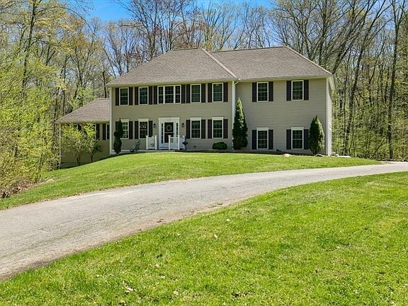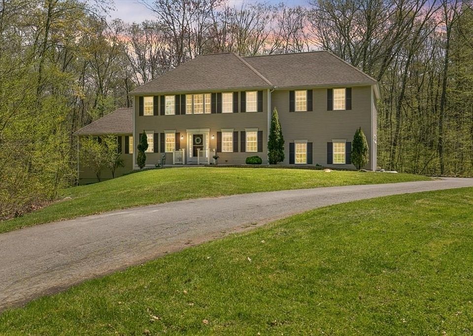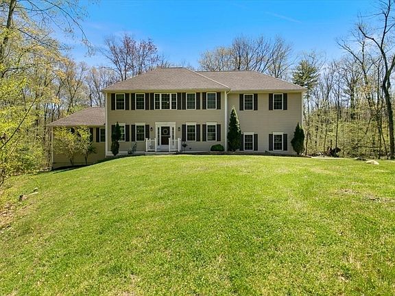 Stunning Colonial set back on a 1.5-acre lot drenched in privacy. The main floor has a great open floor plan that is ideal for entertaining. The welcoming front entry opens to a dining room and living room, which leads to a generous-sized eat-in kitchen boasting ample cabinetry, hardwood flooring, a center island, and a slider leading to a deck overlooking the private backyard! The showpiece of the main floor is the oversized family room with a gas fireplace, hardwood flooring, and recessed lighting. The three bedrooms and an additional room on the 2nd floor are all good-sized with hardwood flooring, closets, and cable. You will love this finished basement!!! Potential for an in-law or a great place for a game room! Options are endless!