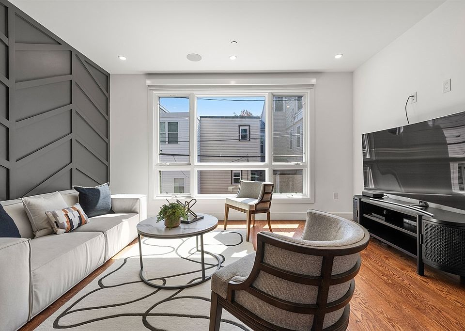 Spectacular 2022 ground-up new construction, 4-bed, 3.5 bath single family with garage parking & 3 private decks on desirable East Side.This thoughtfully designed home has a fantastic floor plan highlighted by sprawling living space, high ceilings & show-stopping floor-to-ceiling windows. The expansive open concept living space feat. a high-end kitchen with Miele appliances, quartz counters, separate custom wet bar/wine fridge & opens onto a deck, perfect for entertaining or for your morning cup of coffee. The kitchen flows into the living/dining room that is flooded with light from its south-facing exposure. Upstairs are 2 huge guest bedrooms, full bath, laundry & a deck. Top floor is fully encompassed by the primary suite with a private deck, walk-in closet, luxurious bath with a separate water closet, soaking tub & W/D. Fabulous bonus room with a full bath on the lower level is perfect for a den/guest room/office. Highlights incl: motorized blinds, surround sound & garage parking.