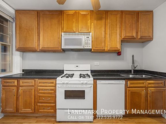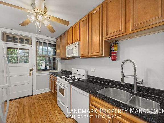 Welcome to 7 Garfield St Unit 1, a charming 2-bedroom, 1-bathroom apartment nestled in the heart of Oak Park, IL. This unit boasts a range of modern amenities designed for your comfort and convenience. Step into a spacious living area adorned with hardwood floors and a decorative fireplace, creating a warm and inviting atmosphere. The kitchen is a chef's dream, equipped with granite counters, hardwood cabinets, a dishwasher, microwave, gas stove, and a fridge. The large windows throughout the apartment ensure ample natural light, enhancing the overall ambiance. The apartment also features central air conditioning and ceiling fans to keep you cool during the summer months. Enjoy the outdoors from your private balcony or the shared deck. The building offers on-site laundry facilities, adding to your convenience. One parking spot is included, and you won't have to worry about snow removal, trash removal, water, or landscaping - it's all taken care of for you. Please note, this is a no-pet property. Experience the perfect blend of comfort and convenience at 7 Garfield St Unit 1.