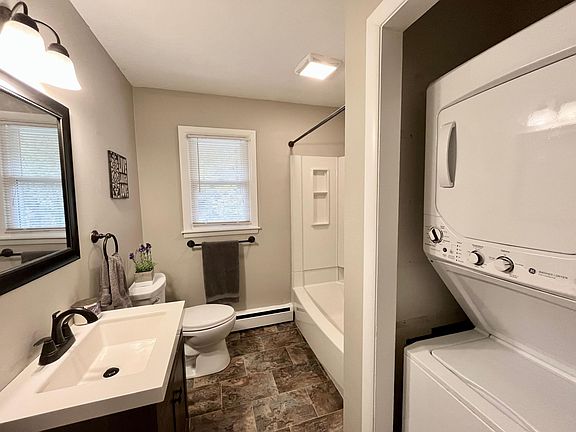 Beautiful, bright 1 bedroom apartment with washer and dryer in unit! Located on the second floor this apartment features hardwood floors, stainless steel appliances, spacious living room and large bedroom. Private entrance and designated parking with reserved space close to building. Quiet location with private wooded picnic area. Convenient location too! 5 minutes to I-84, Exit 66 or 67, 5 minutes to Tri-City Plaza, 10 minutes to Buckland Mall, and 20 minutes to Hartford or UCONN. Security deposit of $1500, last month's rent and first month's rent prepaid prior to move-in. Absolutely no pets or smoking allowed. Credit score of 600+ and gross monthly income of $4500+. Background and credit check and employment history required. Water, sewer, and trash included in rent, tenant pays electricity and gas for high-efficiency heat & hot water. Security deposit of $1500, last month's rent and first month's rent prepaid prior to move-in. Absolutely no pets or smoking allowed. Credit score of 600+ and gross monthly income of $4500+. Background and credit check and employment history required. Water, sewer, and trash included in rent, tenant pays electricity and gas for high-efficiency heat & hot water.