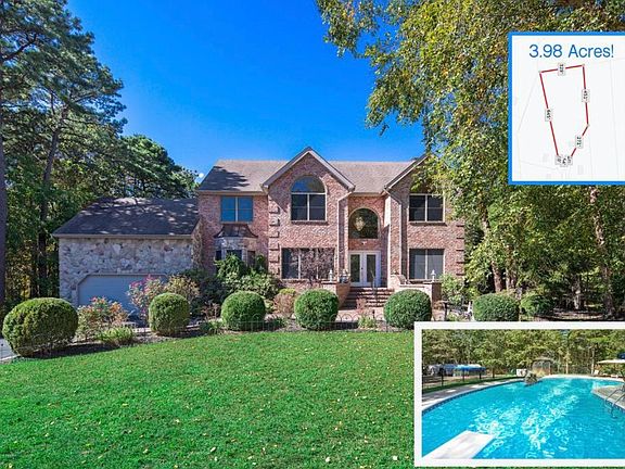 COVETED North Jackson STUNNING Brick front Colonial w 4/5 bdrms & 2.5 BA located on a 3.98 acre private, wooded lot at the end of a cul de sac. IMPRESSIVE 2 Story Foyer & Family rm w/ a massive, brick fireplace. Open floor plan w gleaming hardwood floors that flow into the liv & din rms. Eat in Kitchen w new tile floor, Corian Cntps & stainless steel appliances & . Outdoor to deck that overlooks spacious backyard & SALTWATER GUNITE in-ground pool. Upstairs, palladium windows look out over the lushly landscaped property & brick paver walkways. Large bedrooms & master suite. Partially finished full basement w/ a sauna! This PRIME location is close to all major hwys, parks shopping & the jersey shore. Suburb's & privacy all in one!