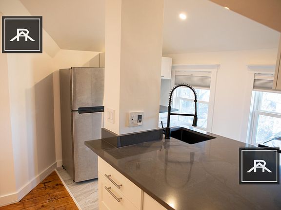 Brookline, Washington Sq. Large, sunny 1.5 bedroom one bath top floor apartment available 12/1/22. Entire top floor of house, open floor plan; cathedral ceilings. Very unique and stunning space; very loft-like. Hardwood floors, renovated kitchen and bath. Two blocks from Beacon St, Star Market, and the Green Line T and all of the wonderful Wash Sq shops and restaurants. Safe, quiet neighborhood. $2300/month includes all utilities (heat, hot water, electricity) free laundry in basement. 1 garage parking available for rent $325 No dogs, may take a cat, Broker Fee does apply