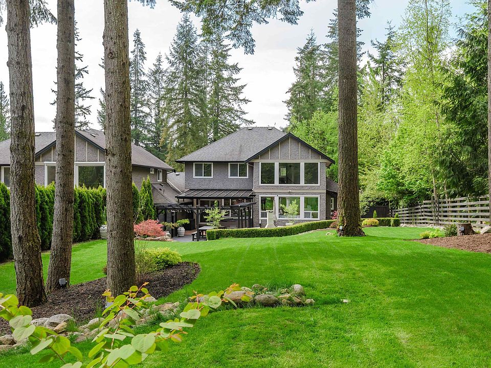 Nestled on a quiet sought after cul-de-sac, this exceptional 3,900 sq. ft. home offers the perfect blend of natural beauty, comfort + privacy. Backing onto a lush greenbelt, featuring a bright open layout with vaulted ceilings, a stunning stone fireplace, generous living and family spaces, an entertainer's kitchen, full basement with private entry + suite potential and a host of thoughtful updates throughout. Set on a private 23,000 sq.ft. lot, the expansive sun-drenched backyard oasis is ideal for entertaining or simply enjoying peaceful moments surrounded by nature. This is a rare opportunity to own a beautifully appointed home in one of Anmore's most desirable neighbourhoods - just minutes from top schools, transit, amenities, trails and Buntzen Lake!