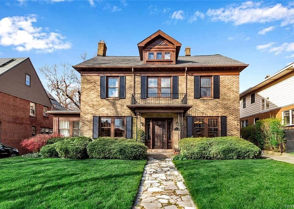 Truly stunning all brick 4 bedroom, center entrance Colonial w/beautiful updates throughout! Welcoming vestibule w/glass drs that open to foyer w/hardwoods. Gorgeous updated kitchen w/granite countertops, center isle w/brkfst bar, recessed lighting & lovely light fixture. Formal liv room w/hardwood flrs. Formal din rm w/hardwoods, custom corner built-ins w/leaded glass. Cozy Den is off the liv rm & features new flooring, gas frplc & is surrounded by windows or can be used as a sunroom. 1/2 bath & mudroom are additional 1st flr features. 2nd flr w/4 lrg bedrooms w/hardwood flrs. 1 bedroom features an add'l "shower". Main full bath is gorgeous! Custom original built-in linen closet & drawers for added storage. 3rd flr walk up Attic for ease of storage! Beautiful Gumwood doors & gorgeous paint colors throughout entire home. This home is so beautifully maintained, welcoming & won't disappoint! Detached 2.5 car garage. 200 amp electric service. New boiler 2015. Roof is approx 10 yrs. Yard is lovely & partially fenced w/Patio to enjoy your time outdoors! Magnificent curb appeal! Super location near University of Buffalo! Ease to downtown & all conveniences. "Showings" start Fri, May 22nd