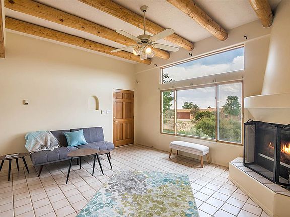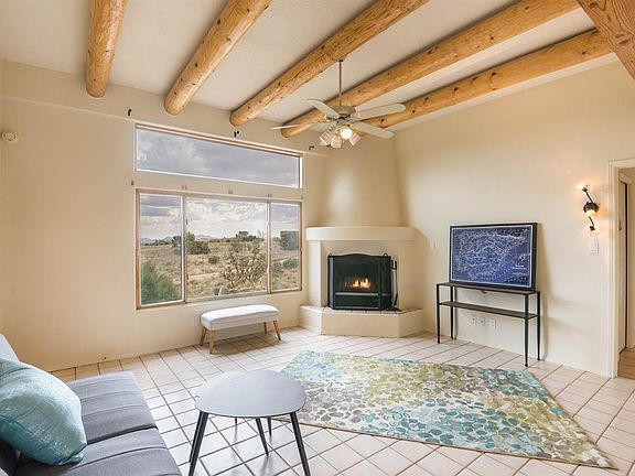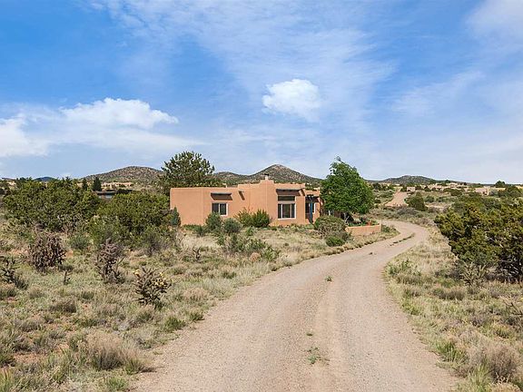 This charming Eldorado home backs to a greenbelt and has stunning views from the Ortiz Mountains to the Sangre de Cristo foothills. The open floorplan is oriented to the south so there is wonderful interior light to match the views. Features include radiant heat, kiva fireplace, tile floors throughout, vigas and a professionally landscaped and fully fenced courtyard area all on one level with attached direct entry garage. Amazing property and price- not to be missed.