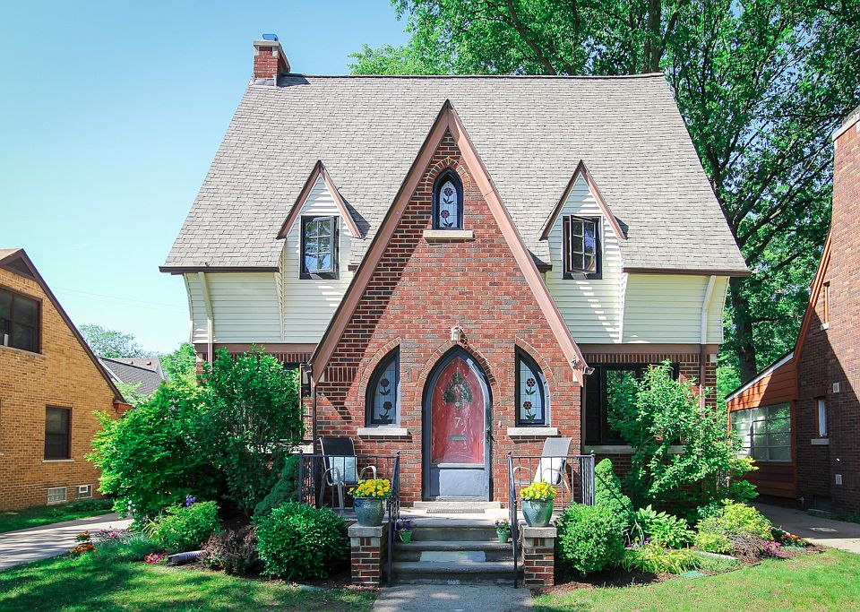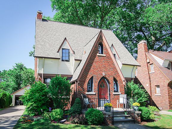 Wonderful, 3 Story Tudor Style Home w/ Steep Gables, Arched Entrance, & Custom Stained Glass Windows, located in Historic Pleasant Ridge. Classic Center Entrance Style leads to Generous, Light Filled Living Rm w/ Stained Wood Detail & Arched Brick Fireplace. Family Rm Offers Built-in Shelving & could also serve as an Office. Formal Dining Rm Allows for Gracious Entertaining. Updated Kitchen w/ Classic White Cabinetry, Solid Surface Counters, & Terrific Butler's Style Cabinetry - providing Additional Storage/Serving Space. Breakfast Nook provides Charming Eating Space. Main Floor Lavatory nestled in Beautifully Tiled Floor - Vestibule Entry. 2nd Floor Features 3 Spacious Bedrooms and Full Bathroom w/ Vintage Tile. Large, 3rd Floor space can serve as Master Bedroom, or Family Room/Office & provides separate heating source. Updates include: many newer windows; Roof-2005; & Boiler-2009. Enjoy Pleasant Ridge Amenities: Community Ctr w/ Pool & Fitness Ctr, Parks, Community Garden, Dog Park.
