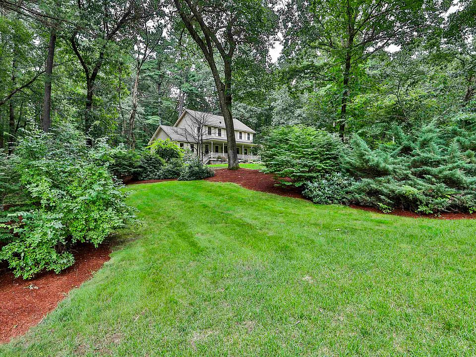 Excellent South Hudson location, this 4 bedroom Colonial is nestled on beautifully landscaped lot (over an acre) in lovely established neighborhood. Brick walkway leads you to farmers porch, impeccably maintained - hardwood floors on first floor, crown molding LR, DR and FR, vaulted ceiling FR. Kitchen with cherry cabinets and granite counters, 1 full, 1 3/4 and 1 half bath, first floor laundry. Easy access to both Rte 3 and Rte 93 and a mere 6-7 miles to Lowell train station.