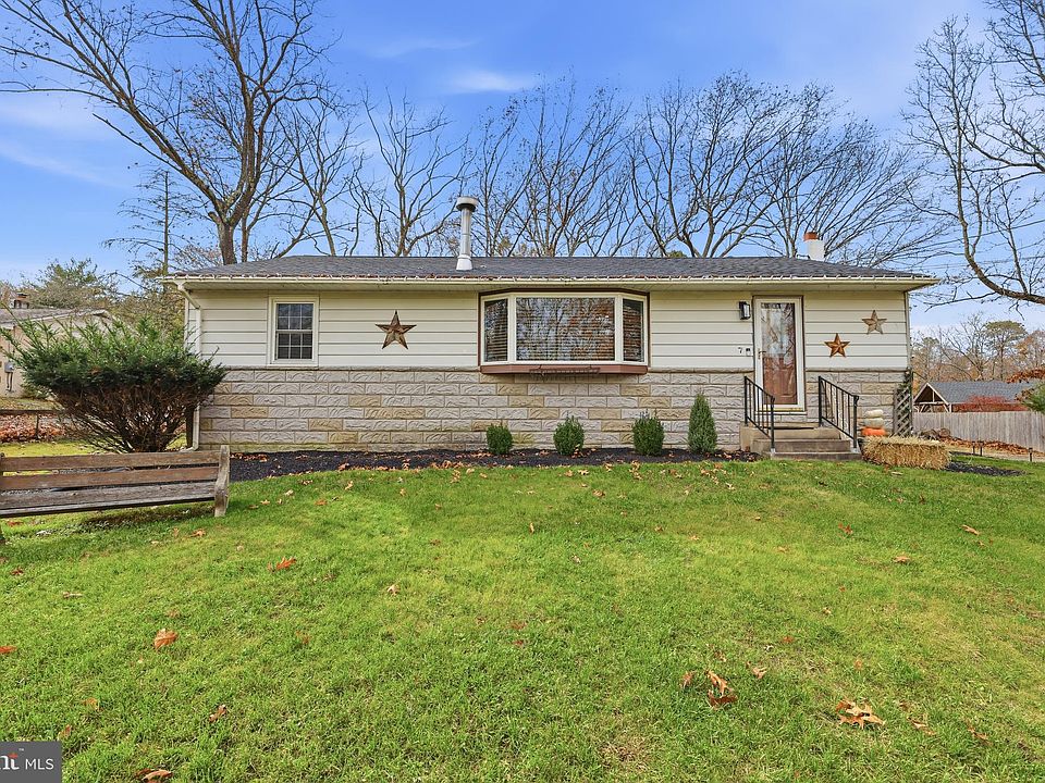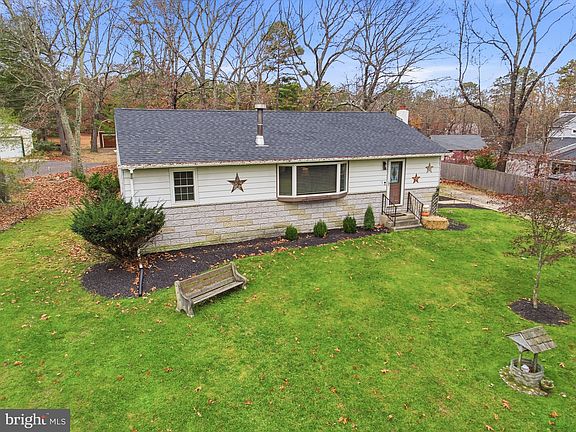 This move-in-ready 3-bedroom, 1-bath ranch sits on over 1 acre of land, offering exceptional privacy and a peaceful setting in the desirable Medford Farms neighborhood of Tabernacle. The property includes a detached 2-car garage and has been impressively updated throughout for comfort, style, and long-term peace of mind. Major improvements include a brand-new kitchen and bathroom, all new windows, refinished hardwood flooring, and a new roof (2022) on both the house and detached garage. The renovated kitchen features a full KitchenAid stainless-steel appliance package, including a 5-burner propane stove, built-in microwave, dishwasher, and refrigerator—all staying with the home. A new washer and dryer are also included and located in the spacious basement with unlimited possibilities! The family room is warm and inviting with refinished hardwood floors and a cozy wood-burning stove. Additional highlights include recessed lighting throughout, an above-ground oil tank (NFA uploaded in Bright), new septic pump, and there is an attic with pull-down stairs. The sellers are putting the finishing touches on the screened side porch making it perfect for relaxing and enjoying the great outdoors bug-free! Offering privacy, updates, and exceptional value, this stylish ranch is truly move-in ready and perfectly suited for easy living on a beautiful, oversized lot. You will Love Where You Live...
