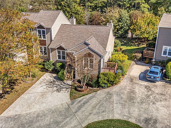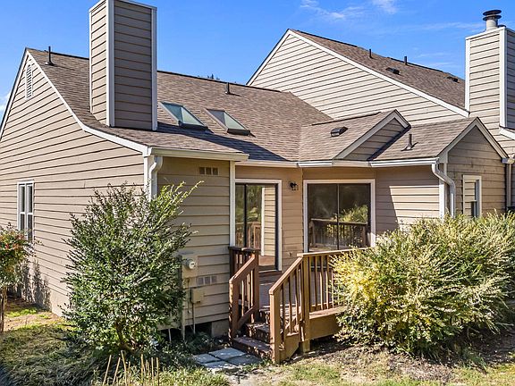 Bright and open 1 story townhome in popular Woodcroft. Updated flooring, interior paint, light fixtures and ceiling fans. The eat-in-kitchen overlooks the living and dining area.The kitchen features new quartz countertops, painted cabinets and stainless steel kitchen appliances. The eating area has access to the side deck. Spacious living room with vaulted ceiling, skylight and fireplace. Refrigerator, washer and dryer stay. Primary bedroom has a vaulted ceiling, walk-in closet and door to the rear deck. Enjoy Woodcroft community trails which connect to the American Tobacco Trail. A short drive to shopping, coffee, and restaurants.