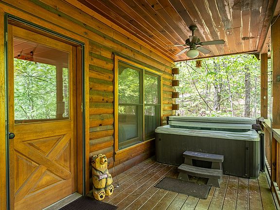 Freshly updated with new interior paint, stylish furnishings, and curated accessories, The Wildwood House is the perfect blend of rustic charm and stylish, modern comfort. Nestled on a serene 1.5+ acre corner lot in the scenic Cherry Lake subdivision, this true-log cabin invites you to unwind in style. Step inside to find a warm, inviting great room wrapped in rich tongue-and-groove wood finishes and anchored by a cozy, wood-burning fireplace – perfect for snuggling up on chilly mountain nights. The open-concept kitchen, featuring cheerful green cabinetry and modern appliances, flows seamlessly into a dining area with seating for four, making entertaining easy and relaxed. With 2 bedrooms, a full bath, and a laundry closet all on one level, the layout is smart and efficient—ideal for low-maintenance living or hosting guests comfortably. The bedrooms have been color drenched in soothing mountain tones to keep the rustic warmth yet still being modern. Step outside and embrace the mountain lifestyle on the expansive wrap-around porch. Soak your cares away in the private hot tub while listening to the sounds of nature or gather around the firepit under the stars with friends and family. Adirondack chairs, fireflies, and the peacefulness of the woods create the ultimate North Georgia experience. Located between the vibrant mountain towns of Blue Ridge and Ellijay, you're perfectly positioned for outdoor adventures like hiking and biking, visits to local wineries, or exploring boutique shops and farm-to-table dining. This turn-key cabin is ready for whatever you envision—whether it's a money-making investment, your weekend getaway, or a peaceful full-time home. Don't miss your chance to own this refreshed, rustic-meets-modern retreat. The Wildwood House is calling—come see it today!