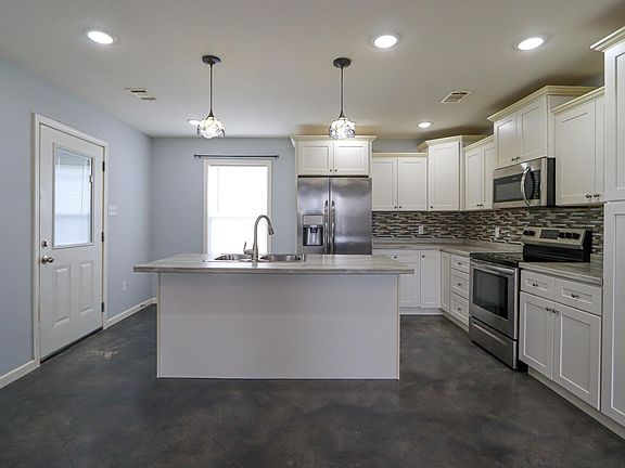 Looking for a charming and modern home that's move-in ready? Look no further than this beautiful 5-year-old home in the Fairview Parks subdivision! As soon as you step inside, you'll be impressed by the open floor plan that's perfect for entertaining family and friends. The stained concrete floors throughout add a touch of contemporary style and make for easy maintenance. The kitchen is a chef's dream, complete with a breakfast bar, pristine white cabinets, and plenty of counter space to whip up your favorite meals. The walk-in laundry room is a bonus feature that adds convenience and functionality to your daily routine. There's even a half bathroom off the living area for added privacy and convenience. The tile walk-in showers in the bathrooms add a touch of elegance and sophistication.You'll love spending time on the screened-in back porch, enjoying the fresh air and beautiful scenery of the fully fenced backyard.