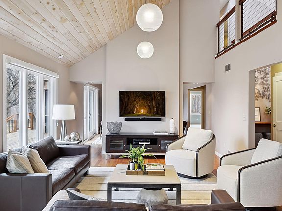 Welcome to your own private oasis! Surrounded by nature at the end of a quiet cul-de-sac, this meticulously-maintained home is situated on 1.24 acres. Enjoy east-facing views of Deep Lake from the Screen Porch or 2 large Decks. Featuring high-end finishes & a contemporary feel throughout, this sun-drenched home is filled with natural light from floor-to-ceiling windows, skylights & vaulted ceilings galore! The main level Owner's Suite is complete w/ 2-way gas FP, huge WIC & private spa-like Bath. The impressive gourmet Kitchen boasts a center island bfast bar, top-of-the-line appliances & remarkable window backsplash! Living Rm w/ gas FP, Family Rm, Sun Rm, Formal Dining, 1/2 Bath, Laundry & more! Upstairs is another 3 Bedrooms & 2 Baths. Lower level features a spacious Recreation Rm w/ wood FP & exits to backyard. Plus, a Wet Bar, Flex Rm, & huge 3/4 Bath. The 3-car Garage has add'l parking pad outside -perfect for guests or maybe adding a 4th stall. Move-in ready & within MV Schools!