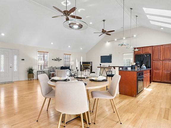 Nestled on 1.87 acres, this stately home exudes timeless elegance and undeniable curb appeal. This beautiful 3 bed, 3 bath home offers more than 2,900 sq. ft. of living space. An open-concept main floor boasts gleaming hardwood floors, recessed lighting, and soaring vaulted ceilings creating an airy, sophisticated ambiance. The living room is framed by an elegant fireplace, creating a warm and inviting focal point. The chef’s kitchen features a spacious center island with a built-in cooktop, oven, and an abundance of cabinets and counter space flowing effortlessly into the dining room, where glass doors offer direct access to the oversized deck overlooking the expansive yard. The home also features oversized bedrooms, stylish baths, and the comfort of central air. Lower level features extra living space, perfect for a man cave, family room or playroom and 2 car garage. Whether hosting guests or enjoying quiet nights in, this home is ideal for any occasion. Offer Deadline 3/10 at Noon.