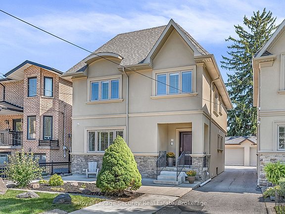 Prepare to be captivated! This extraordinary property, tucked away on a tranquil, private dead-end street, is the definition of modern luxury. The impressive 2017 second-storey addition and full remodel created a seamless, open-concept layout perfect for today's lifestyle. The gourmet kitchen boasts quartz countertops, a generous center island, ample storage with pot drawers and a dedicated pantry, and a convenient pot filler faucet. Elegant hardwood flooring graces both the main and second levels. The upper floor is a private oasis. Retreat to the spacious Primary Bedroom, featuring a stunning coffered ceiling, a charming Juliette balcony, and a custom walk-in closet. The spa-inspired 6-piece ensuite offers indulgence with a rain shower head, frameless glass enclosure, a bidet, and a luxurious free-standing soaker tub. The equally impressive second-floor hall bath includes a floating vanity, separate shower, bidet, and a soaker tub.For ultimate convenience, the home is equipped with dual laundry facilities (second floor and basement). The finished basement offers extended family living or nanny quarters with a separate-entrance apartment. Enjoy the peace of mind provided by the transferable lifetime warranty on the installed LeafFilter Gutter protection. The generously sized lot is designed for entertaining, featuring a large deck, a finished patio stone area, and a side garden. Additional features include an oversized two-car garage, superior front landscaping with 16-inch concrete foundations, and comprehensive perimeter weeping tile drainage. Located just steps from parks, transit (TTC), and essential amenities, this is a unique, meticulously upgraded must-see property!