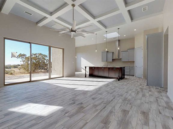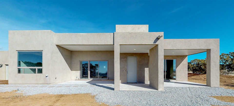 The best of Eldorado living. The only brand new home for sale currently in Eldorado. Brand new contemporary home with huge windows that bring in incredible light and views. Open concept, high end kitchen and baths with lighted color faucets, contemporary style with plaster accents and modern electric 15 colors fireplace. Three bedrooms and two baths, high ceilings throughout with all tile flooring. On community water. Eldorado is only 15 minutes from the heart of Santa Fe with a community center, swimming pool and tennis courts. For about the same price as the older homes in Eldorado you can have a brand new home without the problems. Builder will put in stainless steel appliances (Range, microwave, dishwasher) or give a credit to the buyer to choose their own. Click Virtual Tour for 3-D walkthrough.
