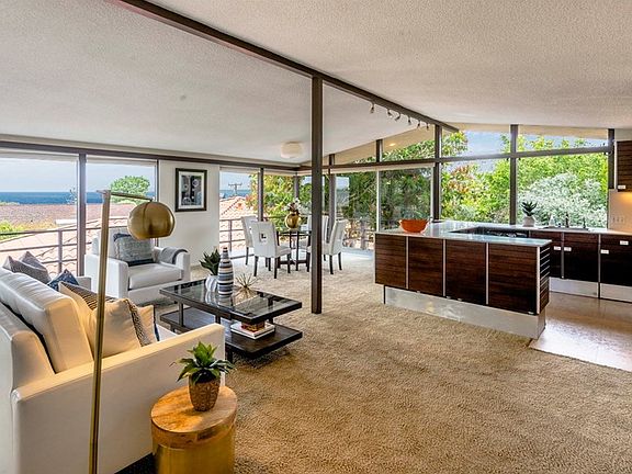 Walls of glass invite you to live among the trees and ocean views in this unique contemporary home. High ceilings and an open floor plan make for a very spacious 3 bedroom, 2 bath home complete with master suite, indoor washer/dryer and separate family room. Decks and patios welcome you outdoors for alfresco dining or to enjoy the lovely secluded private pool. Take a short walk to the bluff and you'll enjoy the cove and tide pools below through private beach access for residents only. Located in the very special coastal community of West Portuguese Bend between Terranea Resort and Trump National Golf Course. Truly a special place to call home!