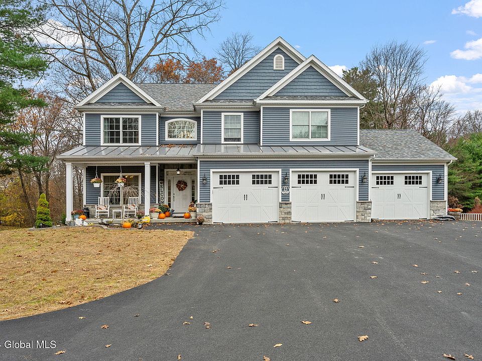 Exquisite custom built home on a quiet cul de sac in a wonderful neighborhood. Centrally located to schools, shopping, sports & entertainment. Large spacious floor plan, gourmet kitchen, cabinets galore, huge walk-in pantry. Spacious bedrooms w/ bath & walk-in closet. Large, private, fenced-in backyard w/ in ground pool (new liner), fire pit, & screened porch leading to Trex deck. Basement could be finished for additional living space and already is equipped with full bath! Exterior appointed with stone, beautiful metal roof and gutters with gutter guards. Garage, garage, garage, garage - no vehicle need be unhoused.