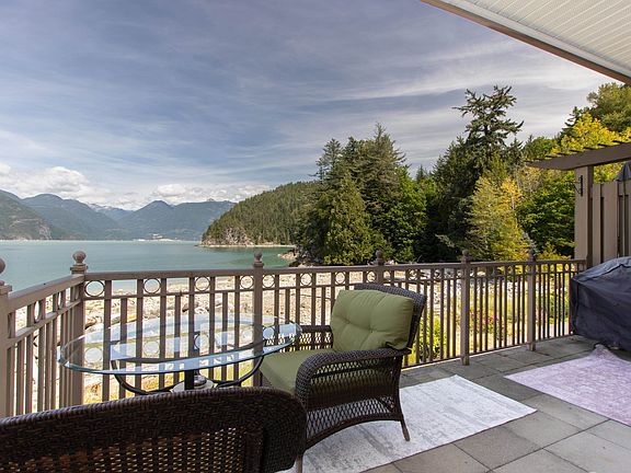 True WATERFRONT living at #7 Olivers Landing! This end-unit townhome offers over 3600sf of indoor living space over three levels with UNOBSTRUCTED water views from almost every room! Up, find two spacious bedrooms both with ensuite bathrooms and spacious walk in closets. The top floor landing can be used as a family TV room or office. On the main level, options for large office or primary bedroom with private ensuite give this home flexibility to age in place. Over-height vaulted ceilings with large windows take in the views of Howe Sound from this front row WATERFRONT home. Open main level spaces are ideal for entertaining friends and family! Down, find a spacious rec room with space for a pool table, games room and optional 4th bedroom (easy reno) with ensuite. Ask about owner amenities!