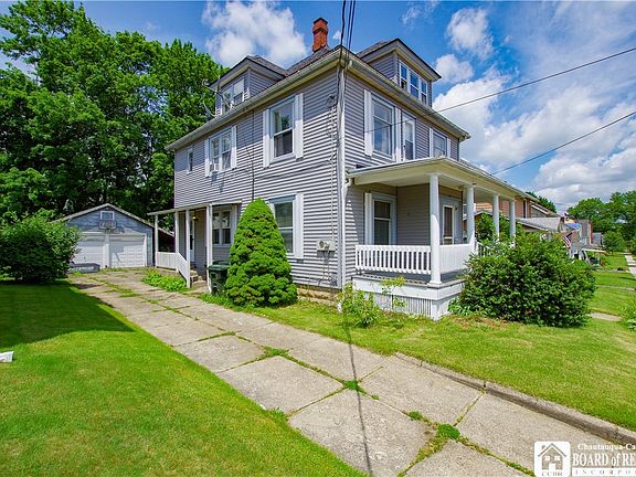 Location, Location, Location! For investors, or live-in opportunists, this property sits in one of Jamestown's most sought after neighborhoods. Two unit property with each unit mirroring each other. Units contains an ensuite bedroom, kitchen, dining area and living room. First floor unit has laundry included. Utilities were once split and can easily be again. Newly shingled roof on house. New shower installed in upper unit. Partially finished attic. Two car garage and covered patio. A great location that can demand a premium rent with a little remodeling.