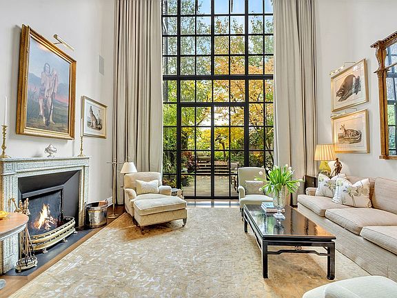 Stunning Architectural Design: Upon entering, you're greeted by an atmosphere of timeless elegance. The garden level showcases dramatic 20-foot double-height ceilings and a full wall of glass, flooding the living area with natural light and creating a seamless flow into the expansive garden-a true indoor-outdoor living experience.
