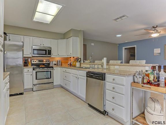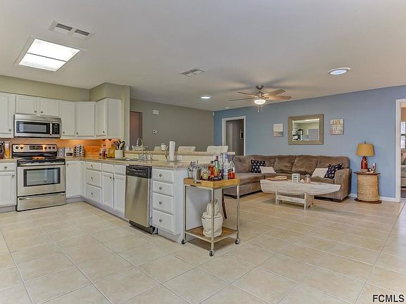 Perfectly appointed must see 3 bed 2 bath in Indian Trails. Over 1900 square feet of open living space with split floor plan, this will not last long. From the moment you walk in the door you will be impressed with the tile and hard wood floors, smooth vaulted ceilings and fresh paint throughout. The house is soaked in natural light from multiple skylights and large windows. Situated in a quiet neighborhood with easy access to all shopping centers, grocery stores, and Flagler Beach. Relax with your morning coffee at the breakfast bar or adjacent screened in patio overlooking your huge fenced in yard. Just a few amazing features of this house include: Upgraded kitchen cabinets with stainless appliances, Newer light fixtures, Large bedrooms with walk-in closets, plenty of storage space throughout, Laundry inside house with deep sink, new AC in 2014 with air purifier , Oversize driveway and garage, garden shed, sprinkler system, Dryer conveys. Make this move in ready home yours today.
