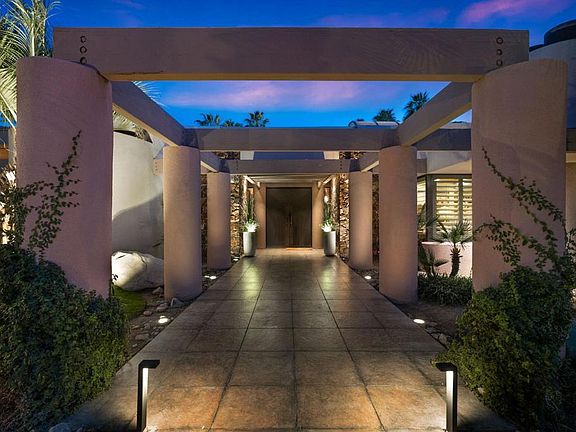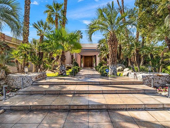 Nestled within the prestigious Big Sioux gated community in Rancho Mirage is this elegant estate that combines an unparalleled blend of luxury and space designed by renowned architect Narendra Patel. Situated on an expansive 1-acre lot, this home boasts 6 bedrooms & 7.25 baths spanning over 7,600 square feet. Upon entering you are greeted by a grand foyer leading to a wealth of amenities including formal living & dining rooms, game room/office & floor-to-ceiling windows. Bathed in natural light the newly remodeled chef's kitchen features a Wolf 6-burner gas stove & grill, Sub Zero refrigerator, double ovens, microwave, warming oven, 2 dishwashers, quartz counters, oversized center island, vinyl wood flooring, bev/wine refrigerator plus breakfast room w/ fantastic western views. The luxurious primary suite offers a spa-like retreat featuring fireplace, dual bathrooms, walk-in closets & new carpeting. There are 3 more spacious bedroom suites in the main house plus a 2 bedroom, 2 bath guest house w/ vaulted ceilings, cedar-lined walls, living area, kitchenette, & stunning stone fireplace. The meticulously landscaped grounds provide an exquisite backdrop for outdoor entertaining, featuring a salt-water pool, raised spa, fire pit, elevated pavilion w/built-in kitchenette, BBQ & pool bath, overlooking the full-sized tennis court with stadium lighting. To top off this estate's magnificence are the unobstructed mountain views and amazing sunsets.