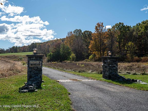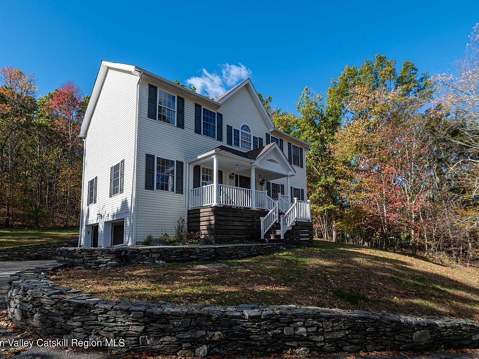 Nestled on 6.27 private acres framed by vibrant fall foliage and mature hardwood trees, this nearly new 3-bedroom, 2.5-bath Colonial offers the perfect balance of modern comfort and country serenity. The long private driveway, flanked by stately stone pillars, welcomes you home to a place where nature and refinement coexist beautifully. Imagine weekend mornings sipping coffee on the front porch as autumn leaves drift across the stocked pond—ideal for floating, fishing, or simply unwinding beneath the crisp Hudson Valley sky.
