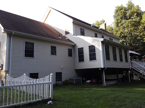 Impeccably Maintained home built by Santini being sold by Original Owners! Pride of Ownership shines throughout this 4 bedroom, 2.5 bath home with additional first floor office, den or 5th bedroom! A two story foyer welcomes all into this wonderful home. Hardwood floors throughout the open first floor layout. Formal living and dining rooms flow nicely into the kitchen and family room complete with fireplace and wall of windows which capture light and make the living spaces bright and airy! Granite kitchen with huge center island has enough room for the whole family to gather around at the breakfast bar. From the kitchen and family room opens a large, light-filled sunroom with vaulted ceilings and is heated for year-round use! First floor laundry room is conveniently located next to first floor office or den. 4 generous sized bedrooms include a master suite with walk-in closet and full bath complete with jetted tub, shower stall and his and hers sinks! Other notable features include wrap-around covered porch, central air, 6 heating zones for highly efficient operation of this home, built in speakers, propane fireplace on first floor and additional wood fireplace in walk-out lower level that is perfect to finish for additional living space if needed. All of this is set on a lightly wooded 1 acre lot on a cul-de-sac street, conveniently located, close to everything, with an easy commute to UConn or Hartford! Dont miss this wonderful home.