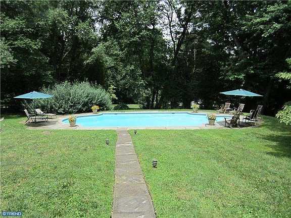 Strikingly handsome home, nestled on more than an acre of private park-like grounds including a gorgeous pool. This truly fabulous home boasts beautiful views from every window.From the welcoming foyer, step into a large formal living room enhanced by a gas fireplace and new hardwood floors. Living room flows into an elegant dining room, perfect for entertaining. Dining room also has new hardwood floors and brand new French doors. The bright eat-in kitchen has loads of counter space, a pantry, desk and breakfast area. Adjacent to the kitchen, the charming den has many built-ins and random width hardwood floors.The second level features a spacious master retreat with ample closets and a full bath. Four large bedrooms and an additional full bath.Each bedroom has a walk-in closet. The lower level of the home has a wonderful family room with a brick gas fireplace, a wet bar and powder room. There are sliders to the patio and pool. Enormous finished basement has a laundry room, workshop and walk-out access. Updated systems-roof(2008), Furnace/A.C.-(2010), hot water heater-(2011). Located on one of the most desirable cul-de-sacs in the area, this home is easily accessible to the Blue Route, all of the Main Line, Center City and the airport, and is within minutes of EA campus, Aronimink Country Club, and the Bryn Mawr and Paoli train stations.