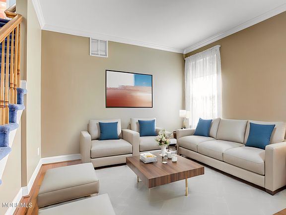 Welcome home to this center hall colonial in desirable Monmouth Ridings community in Howell Township. This home is meticulously maintained by original owners. 1st floor offers 9' ceilings, formal living & dining rooms, family room with wood burning fireplace that opens to the kitchen with stainless steel appliances. Sliders lead to a maintenance-free deck with an impressive gazebo and above ground pool. Upstairs you find a spacious master bedroom with large walk-in closet and renovated master bath with oversized vanity and large shower. Other features include a large basement with extra high ceilings, a deep 2 car garage, fenced-in yard, underground sprinklers and a natural gas grill. Conveniently located to transportation, shopping, award winning schools and the Manasquan Reservoir.