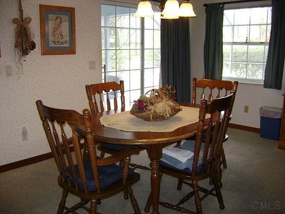This lovely pool home is cozy, comfortable and inviting and well cared for by the original owners. Oak cabinets in kitchen; six panel wood doors throughout home, as well as stained molding. French door from Master Bedroom to pool & lanai. Sliding doors from Dining Room and second bedroom to lanai & pool area. Vaulted ceiling in living/dining room. Kitchen is open to dining room. A/C replaced 2006, Roof replaced 2007, newly painted interior & exterior, also pressure washed. New pool pump 2014. Sprinkler system with well. Pull down attic with flooring for storage.