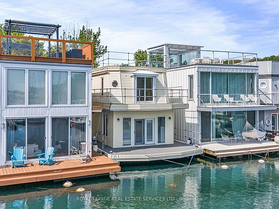Not many Torontonians know about this hidden treasure tucked away in the waterfront float homes community. You can live there year-round, unaware that you are in the big city. The two-story house has two bedrooms, one regular bathroom with a tub and one powder room. On each level there is an access to the deck with breath taking view of the lake and far away vistas. Main floor has an open concept kitchen combined with a living and dining area. This is a fully functional home, with the spectacular calming presence of the lake. To fully appreciate its uniqueness, you need to come and experience this amazing location, see the view of the lake and the entire Bluffers Park. Close to a Go Station, nearby stores on Kingston with easy access to downtown Toronto!