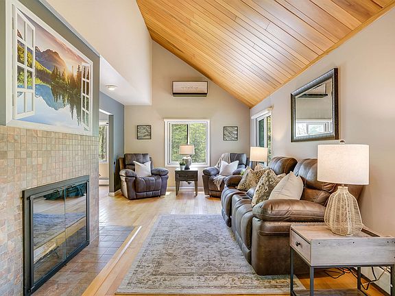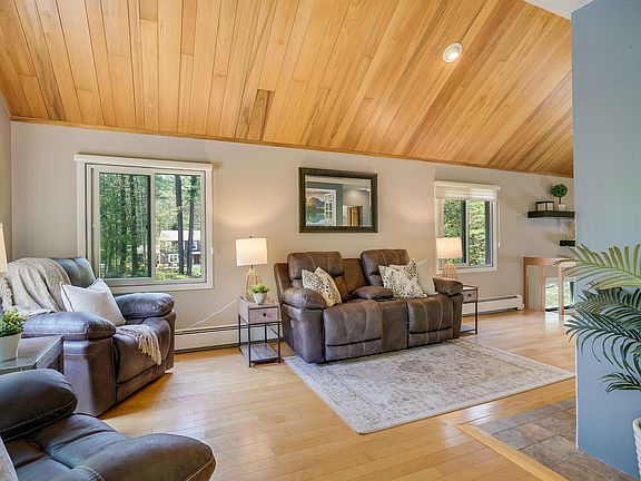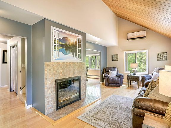 This freshly updated OPEN-CONCEPT contemporary 3 level home will drop your jaw the moment you step in with a view of the first 2 floors at once! SOARING HARDWOOD CEILINGS crown this one-of-a-kind beauty with a sun-filled living room centered on a FLOOR-TO-CEILING WOOD FIREPLACE that flows into the sunny dining room. An updated kitchen with granite counters, months-old appliances, island and coffee nook connects to an OVERSIZED SCREEN PORCH where you can relax with a drink and enjoy the breezes after a long day. Nearby a spacous primary bedroom suite provides a CALMING OASIS with a large step-in shower, walk-in closet and 2 vanities! Upstairs are 2 large bedrooms with VAULTED CEILINGS, big closets and a full bathroom between. The lowest level includes the ideal hangout space--family room with wood fireplace and a huge sunroom with new laminate flooring and WALLS OF WINDOWS overlooking the FLAT BACKYARD...perfect for movies, pool table, playroom or mancave! A 4th bedroom or office with 3/4 bathroom complete this level. Don't miss the walkout garage with BRAND NEW EPOXY FLOORS...home for your cars or gym equipment! NEW oil tank & flooring, updated 1/2 bath & shed, professionally painted throughout. Your PRIVACY is assured on this PICTURESQUE WOODED LOT located on a DEAD-END ROAD that leads to Peabody Mills Environmental Ctr and 600+ acres of HIKING TRAILS! Don't miss your chance to live in desirable Amherst with its TOP SCHOOLS, easy commuting, shopping and famous VILLAGE GREEN!