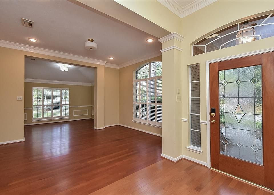 Wonderful single story, 4 bedroom, 2-1/2 bath home conveniently located in the heart of The Woodlands. Inviting entry leads to both formal living & dining rooms or spacious den. Island kitchen accented with granite counters and stainless steel appliances also boasts a chef's desk & wet bar. Master bedroom enjoys a view of the wooded backyard. Master bath complete with jetted tub and separate shower. Roomy secondary bedrooms. The breakfast room and den overlook the low maintenance back yard. Be sure to discover the private sun deck. Refrigerator, washer & dryer included. Added Driveway/detached garage privacy with automated gate. Yard maintenance included! Great location with nearby shopping, restaurants, schools, parks and walk/bike trails. See your next home today! Tenant pays all utilities, currently tenant occupied. Please do not disturb tenants