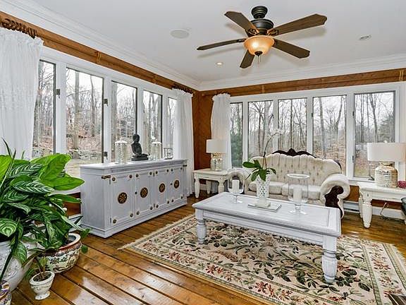 Completely rebuilt home with the finest of finishes from the outside in. Wood roof, cedar shake siding, copper accents, stone faced foundation, stone framed pond with stream&bridges, meandering stone walls surrounding expansive lawns.Liv rm w/fpl,opens to dining rm,&kitchen with new appliances,custom cabinets,& stone counters.Family room off kitchen opens to covered stone porch and patios. There are 2 bedrooms and 2 full baths on the first floor.The 2nd floor has a luxurious master suite w French doors to deck overlooking gorgeous grounds,walk in closets,& a spa bath w/ tub and large shower.There are 2 more large bedrooms& 2 beautiful baths.a small den/6th small bedrm and a 2nd family room with bar and balcony.LL has an exercise rm,ofc.&bth