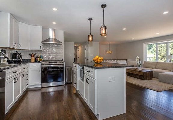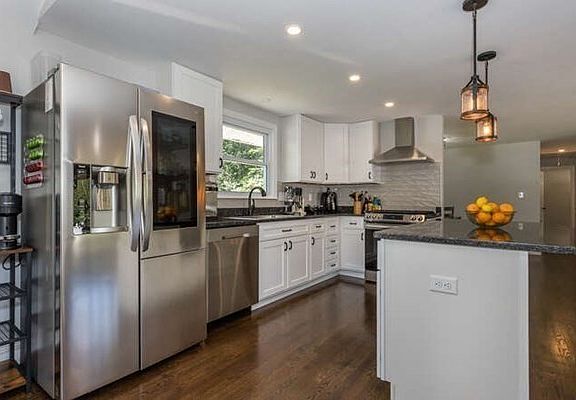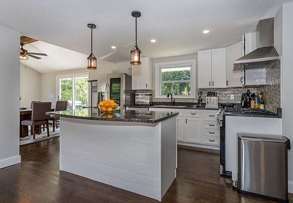 - Features: Beamed Ceilings, Flooring - Hardwood, Dining Area, Countertops - Stone/Granite/Solid, Countertops - Upgraded, Kitchen Island, Breakfast Bar / Nook, Cabinets - Upgraded, Recessed Lighting, Stainless Steel Appliances, Gas Stove, Lighting - Pendant