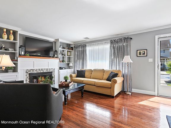 Welcome Home to this beautifully maintained expanded Cape in Keyport! This home sits on one of the largest lots in the area & greets you with beautiful curb appeal, from the picturesque white fence to the window-ledge flower boxes. Enter the home into a cozy living room with wood-burning fireplace & custom built-in wall units, finished with decorative moulding. To the left of the entrance, find a dining room with unique custom woodwork throughout, followed by French doors leading into a cozy den, offering expanded indoor entertaining space. The enhanced kitchen includes granite counter tops, NEW appliances, newly painted cabinets & custom wine rack. (See more...) Off of the kitchen find a HEATED BONUS ROOM with endless possibilities, from enjoying movies & sports events to relaxing with coffee and cocktails. The Bonus Room had direct access to both the front and back yards for convenient outdoor entertaining, as well as to the garage which includes plenty of storage! The upper level of this home includes 2 generously sized bedrooms, full bath, and conveniently located washer/dryer. The basement is partially finished with a private office, and also includes plenty of storage space. This home is close to shopping, restaurants and local water fronts, as well as public transportation and major roadways for a convenient commute to NYC!