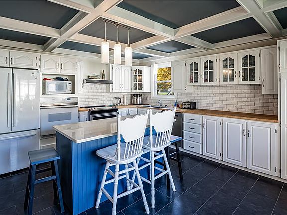 Big fully fenced backyardBeautifully updated kitchenQuartz-topped islandBamboo countertopsSubway tile backsplashCoffered ceilingTwo ovens