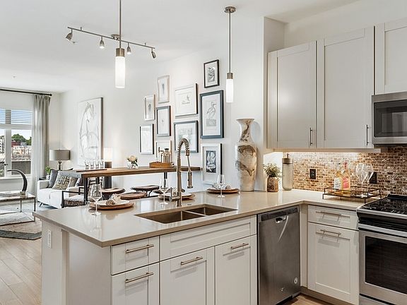 Step into modern luxury at this spacious 2 bedroom, 2 bathroom residence, located steps from Alewife Station. Designed for both style and function, this home features an open-concept floor plan with king-size bedroom layouts, wood-style flooring, and oversized windows that fill the space with natural light. The gourmet kitchen is equipped with stainless steel appliances, granite and quartz countertops, custom cabinetry with under-cabinet lighting, and a stone-tile backsplash. Spa-inspired bathrooms offer dual vanities, soaking tubs, and walk-in showers in select homes. Each unit includes a full-size washer and dryer and custom walk-in closets for effortless living.