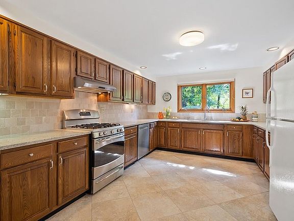 Set on an acre lot with woodlands, lawn, blooming perennials and an ornamental pond this property is an oasis of calm. Skylights, sliders and loads of windows help maximize sunlight and the beautiful setting. Plenty of interior living space ??? the open concept kitchen with granite counters, tile backsplash and pantry, effortlessly flows into the bright dining room with hardwood and slider to expansive mahogany deck. Light streams through skylights into the living room with wood burning stove. Gleaming hardwood continues upstairs to 3 bedrooms and updated shared bathroom, including a sunny owners' suite with vaulted ceiling, skylights, a cedar closet and adjacent dressing room. Future expansion potential in the full LL. Plenty of options for outside living on the private screened porch, expanded deck and blue stone fire pit area. Two sheds offer utility and storage. Recent updates in the past 5 years ??? Marvin/Pella windows/skylights/slider, Goodman HVAC and roof (2010).